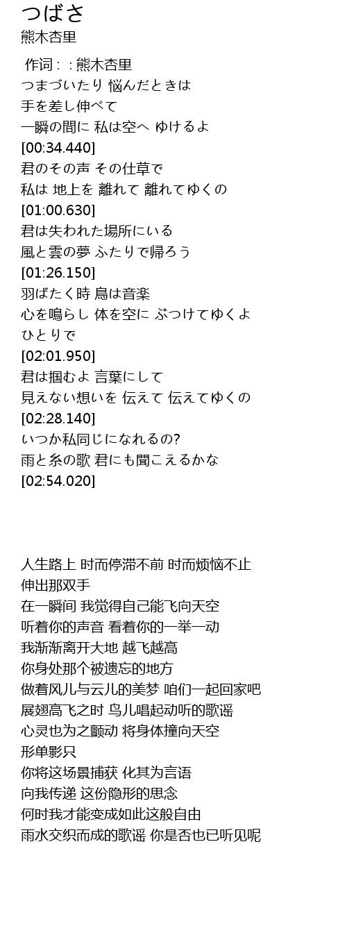 | [00:00.00] | 作词 : ∶熊木杏里 |
