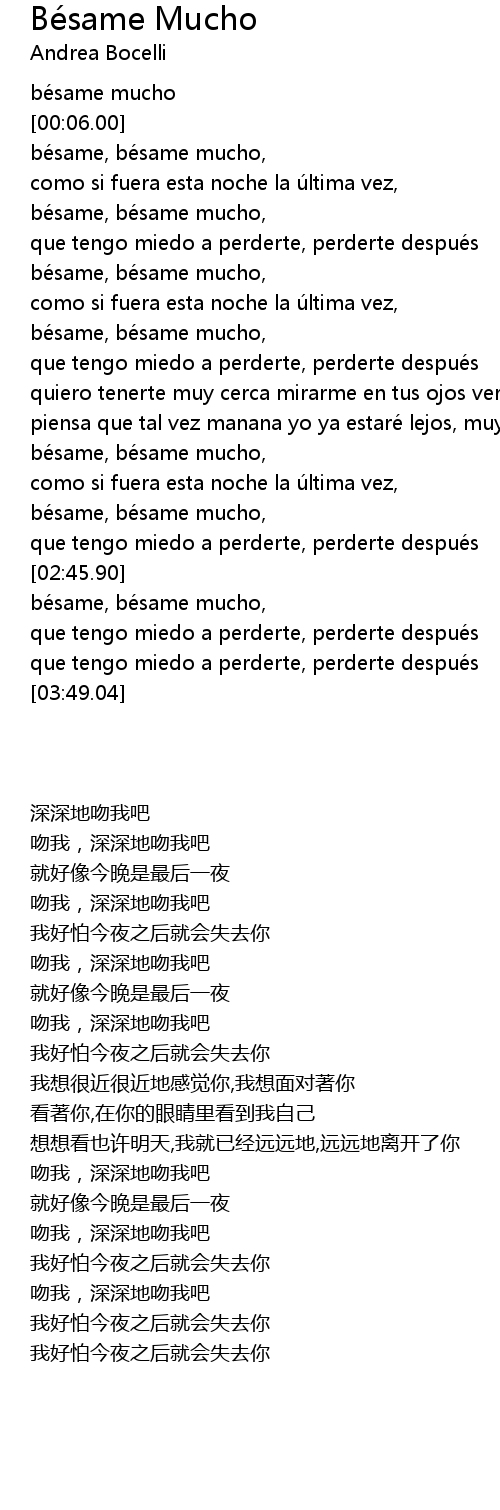 | [01:49.99] | piensa que tal vez manana yo ya estare lejos, muy lejos de ti |
