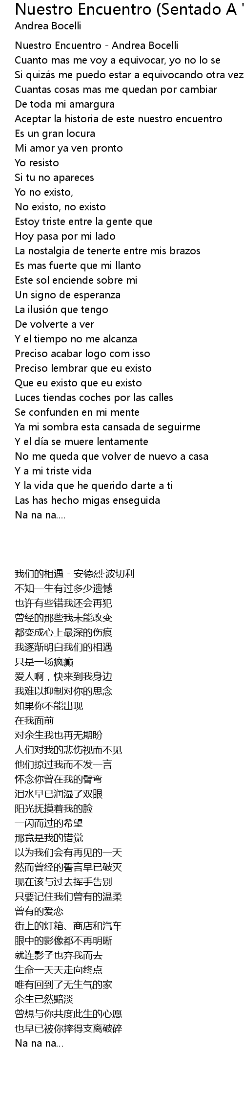 | [00:00.29] | Nuestro Encuentro Andrea Bocelli |