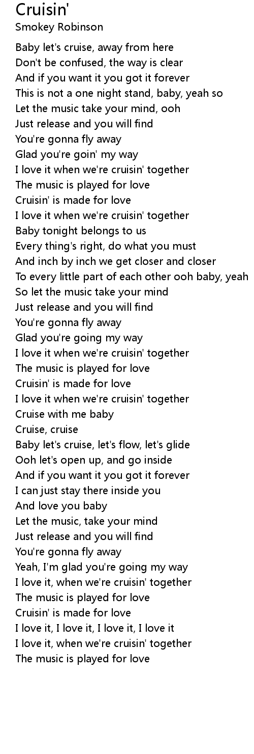 I love it when we're cruisin' together |