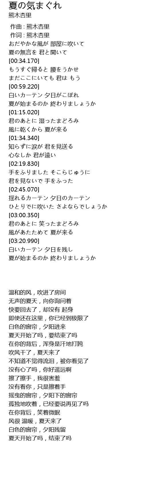 | [00:00.00] | 作曲 : 熊木杏里 |