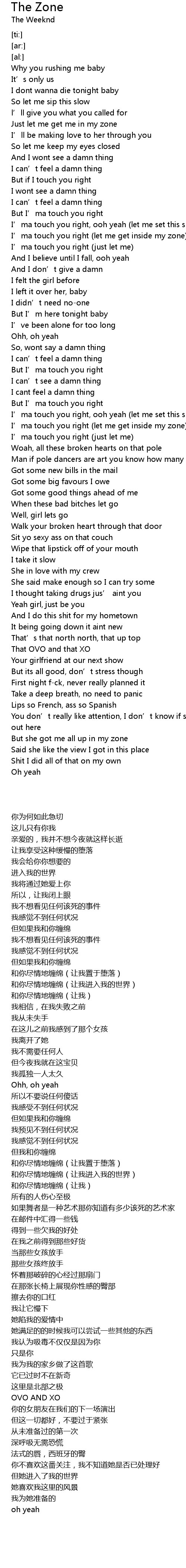 | [02:22.57] | I' ma touch you right let me get inside my zone |