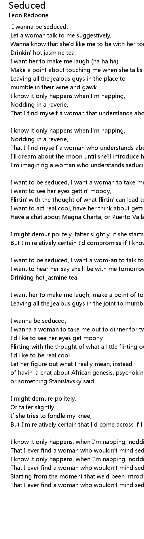 I want to be seduced, I want a wom-an to talk to me suggestively