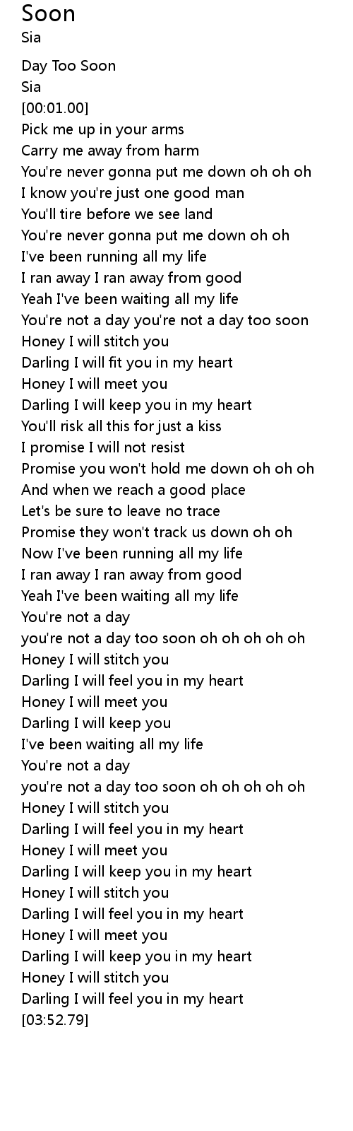 | [00:46.23] | You're not a day you're not a day too soon |