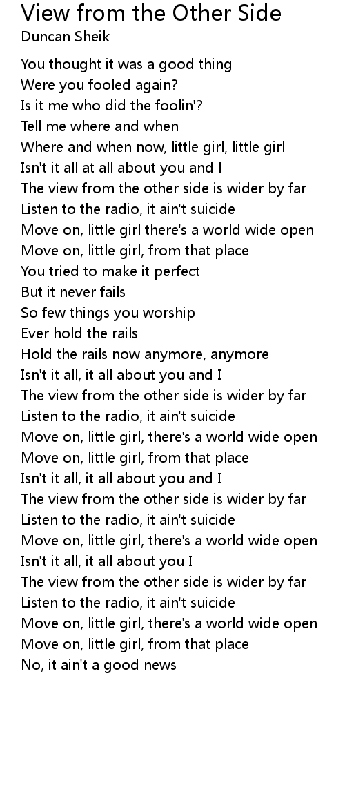 Move on, little girl there's a world wide open |