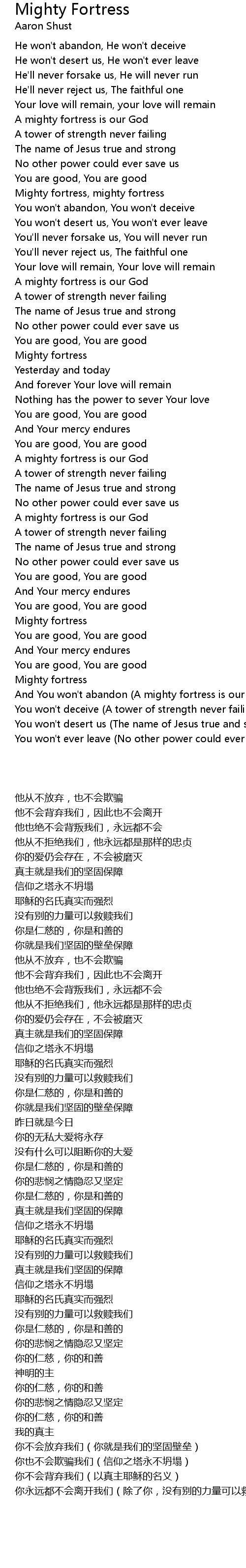 And You won't abandon (A mighty fortress is our God) |