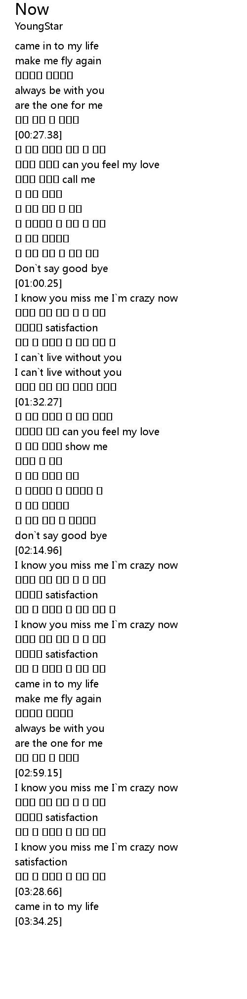 | [03:14.28] | I know you miss me I m crazy now |