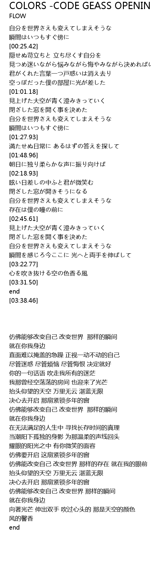 | Song | COLORS -CODE GEASS OPENING MIX- |