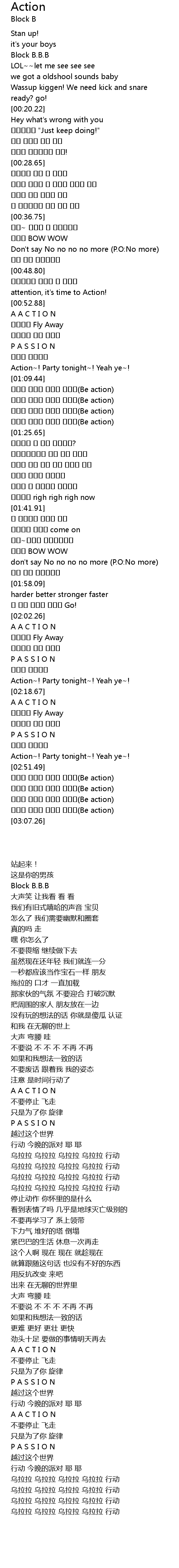 | [03:03.19] | 울랄라 울랄라 울랄라 울랄라(Be action) |