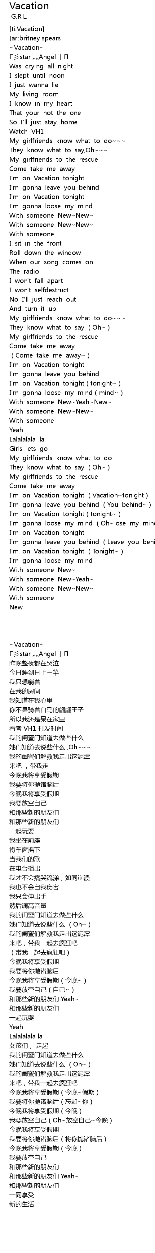 | [02:43.905] | I' m on Vacation tonight Vacation tonight |