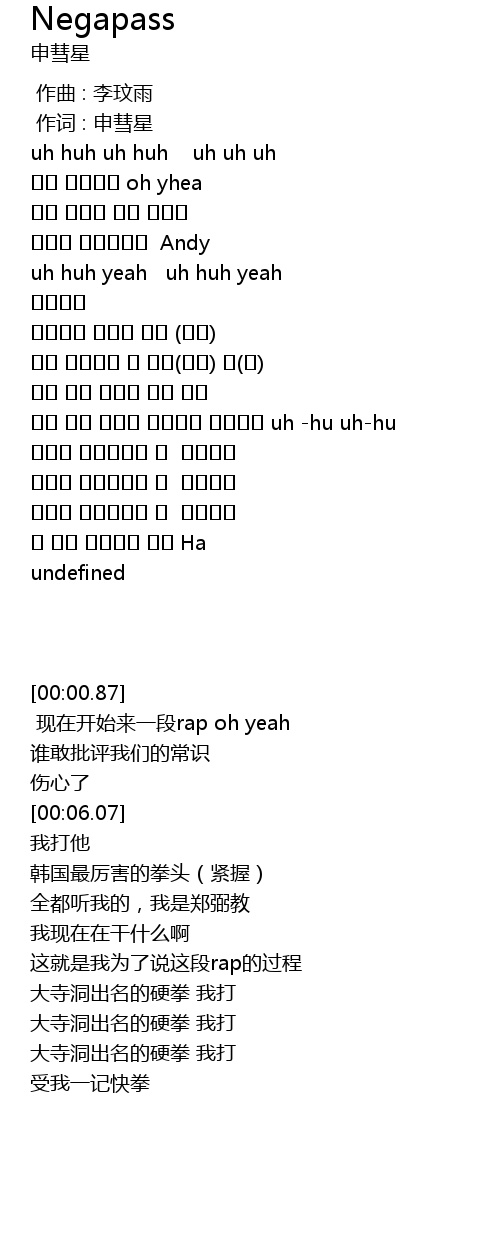 | [00:04.96] | 앤디가 아프게했네 Andy |