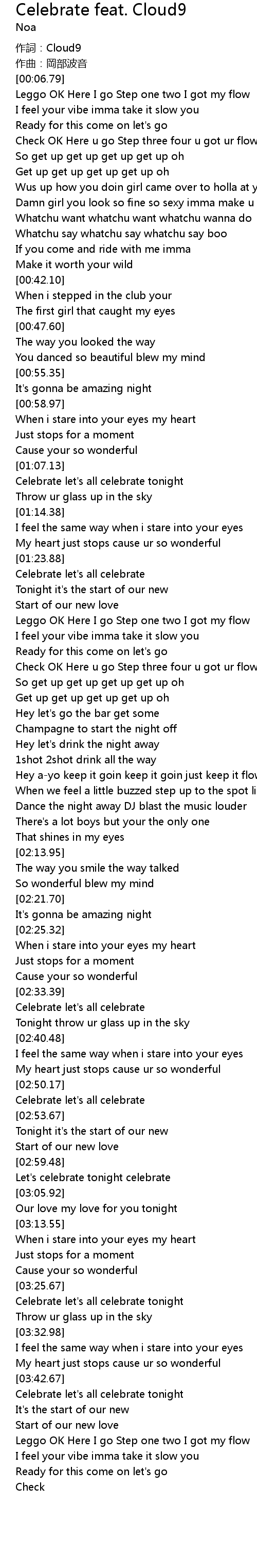 | [03:01.42] | Let' s celebrate tonight celebrate |