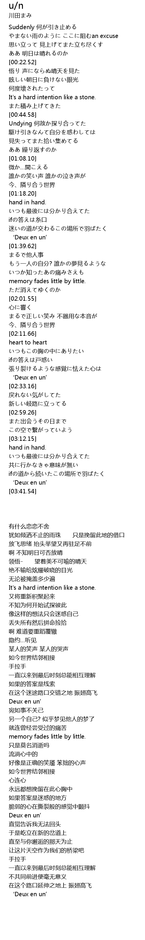 | [00:46.43] | Undying 何故か探り合ってた |