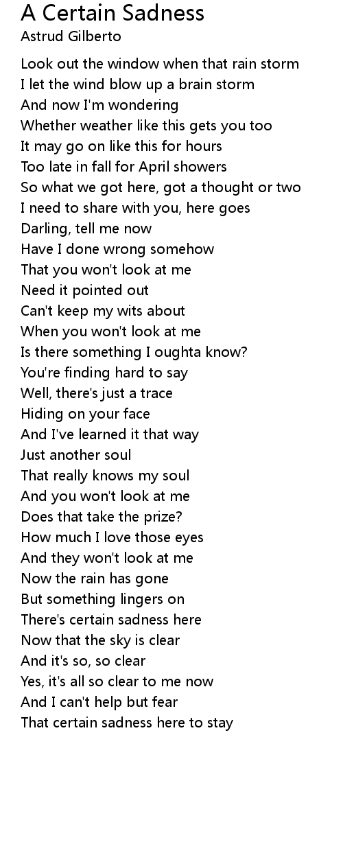 That certain sadness here to stay |