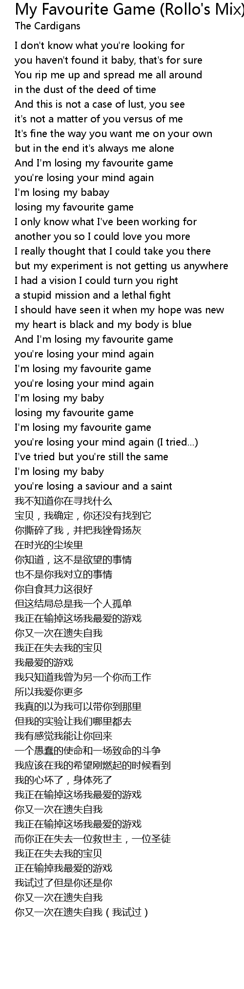 | And I' m losing my favourite game | |