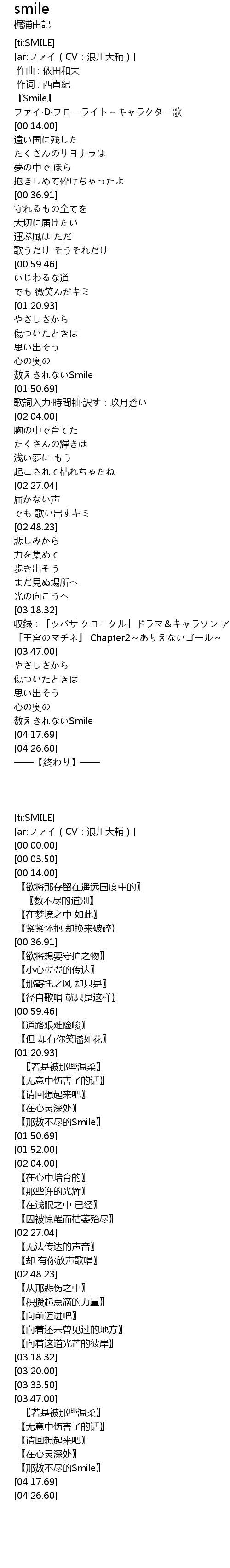 | [03:20.00] | 収録:「ツバサ·クロニクル」ドラマ&キャラソン·アルバム |