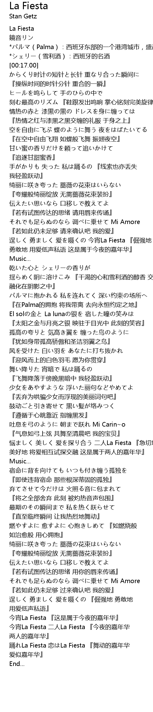 | [04:40.46] | 今宵La Fiesta 二人La Fiesta 『今夜的嘉年华 两人的嘉年华』 |