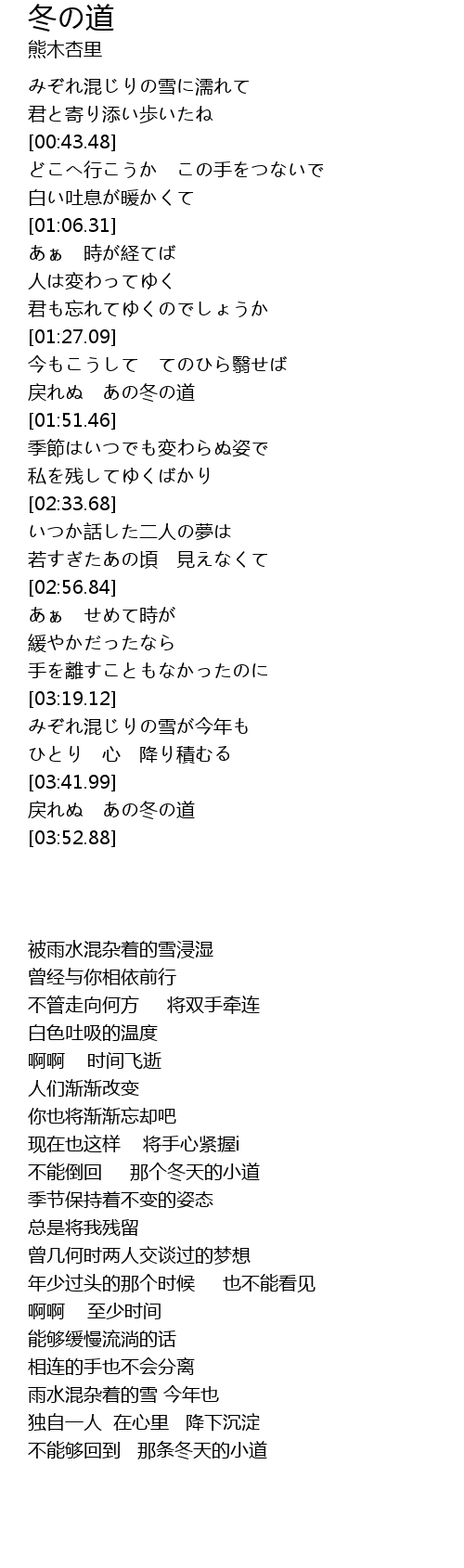 戻れぬ あの冬の道 |