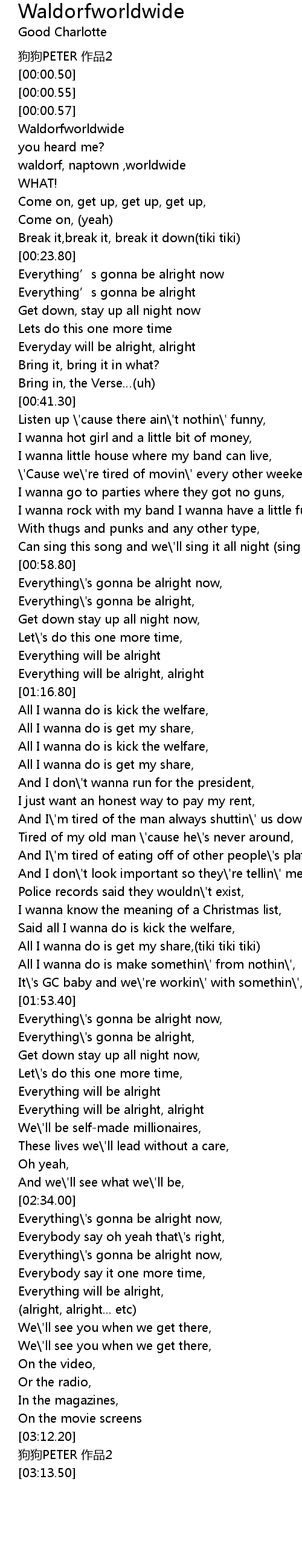 | [01:53.70] | Everything\'s gonna be alright now, |