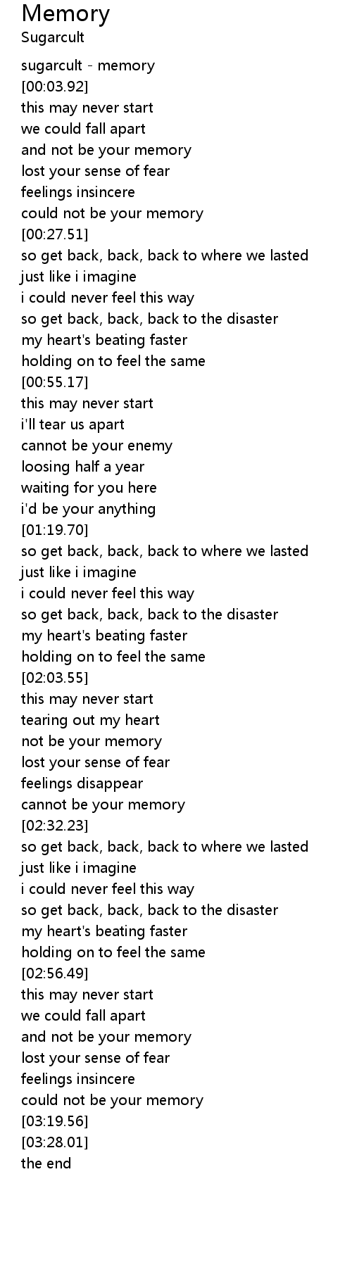 sugarcult - memory |