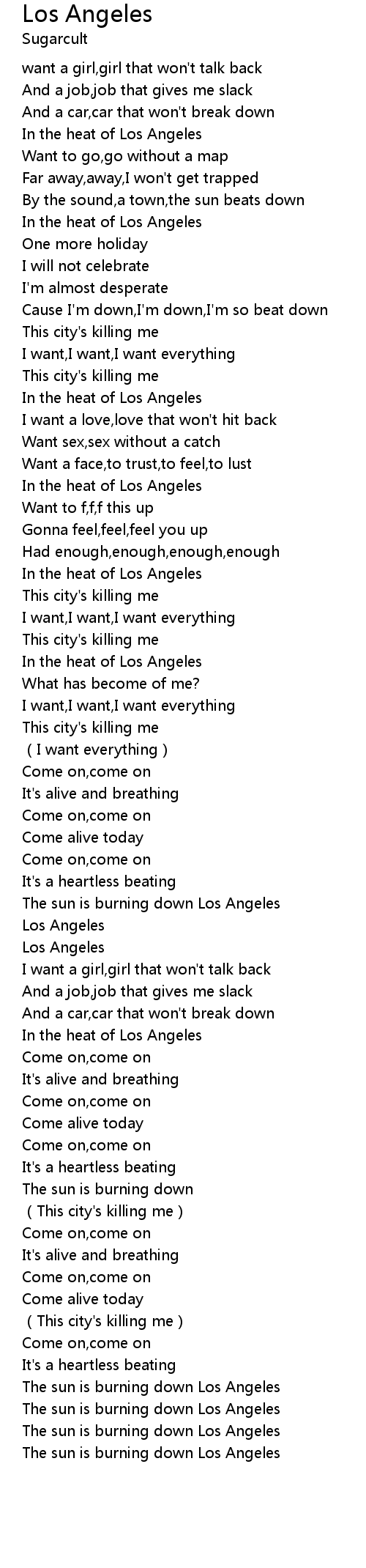 | [03:19.846] | The sun is burning down Los Angeles |