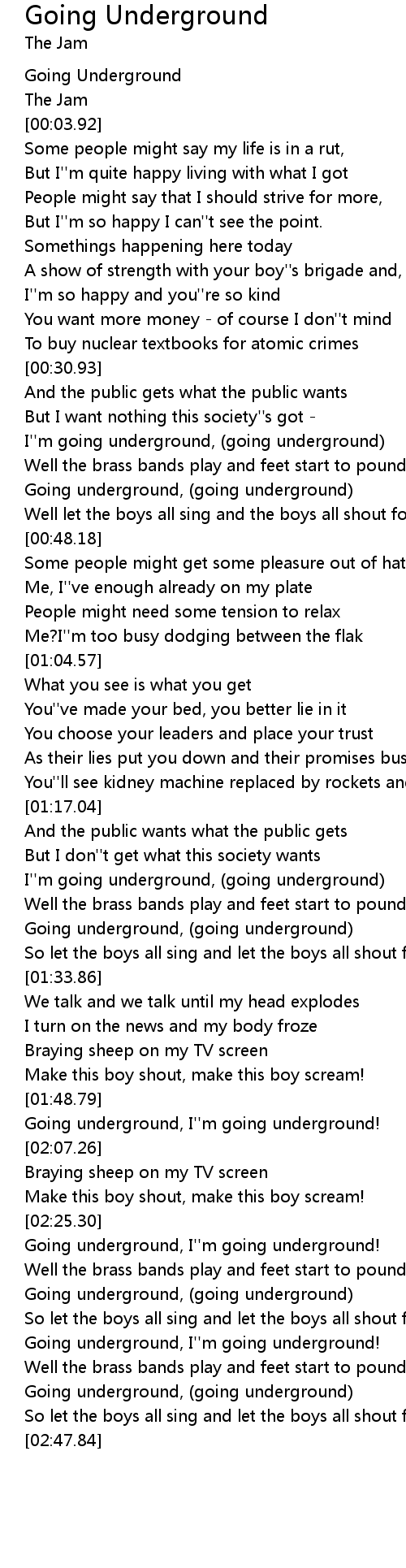 Going underground, (going underground) |