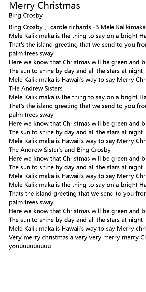 | [00:10.610] | Mele Kalikimaka is the thing to say on a bright Hawian Christmas Day |