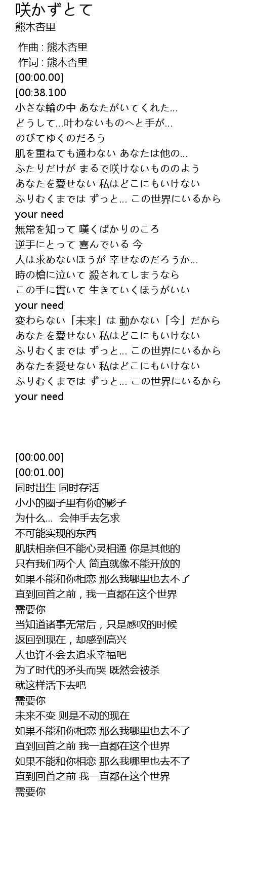 | [00:00.00] | 作词 : 熊木杏里 |