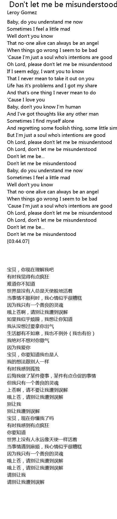 [03:20.39] Oh Lord, don't let me be misunderstood