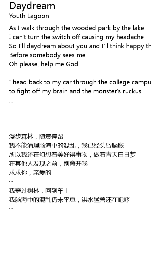 | [00:30.92] | So I'll daydream about you and I'll think happy thoughts |