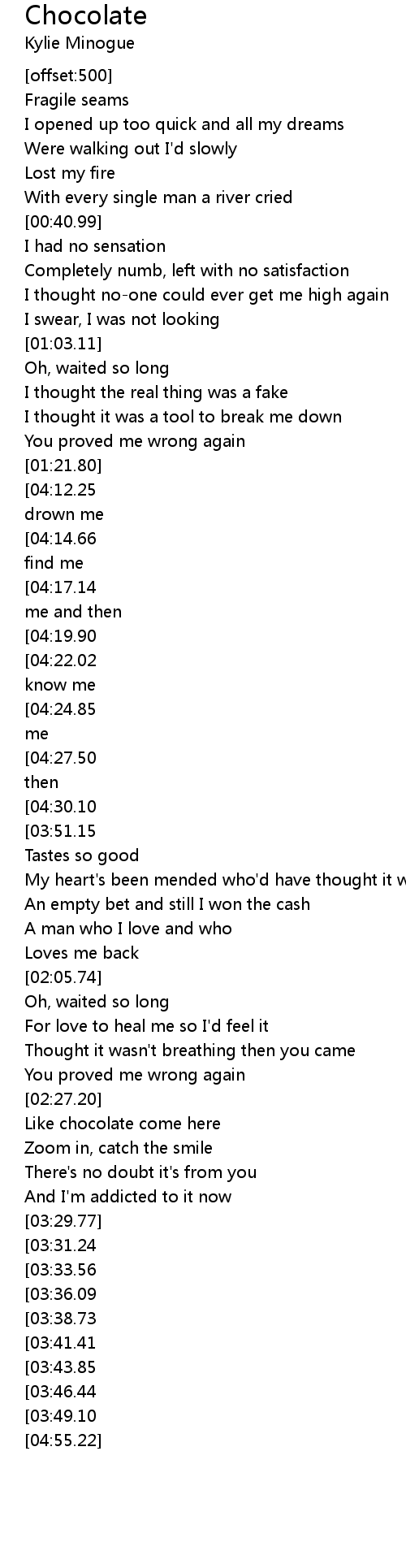 | [04:45.54][04:24.85][03:02.20][02:41.60][01:37.08] |