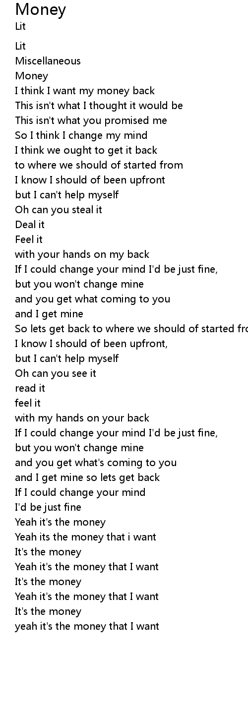 Yeah its the money that i want |