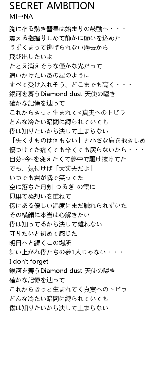 | Song | SECRET AMBITION |