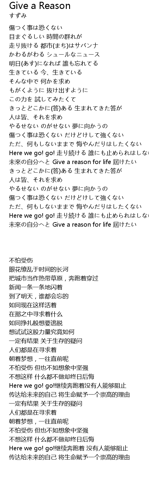 | [01:16.48] | 未來の自分へと Give a reason for life 屆けたい |