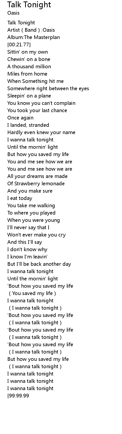 | [02:52.57] | I wanna talk tonight |