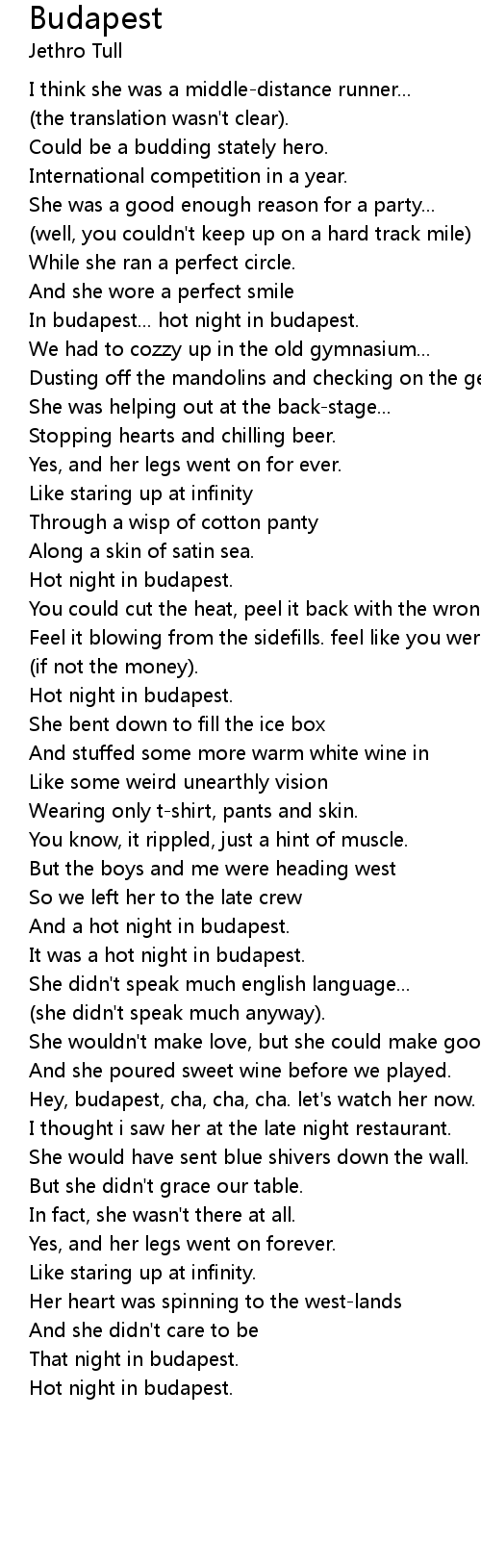 Hey, budapest, cha, cha, cha. let's watch her now. |