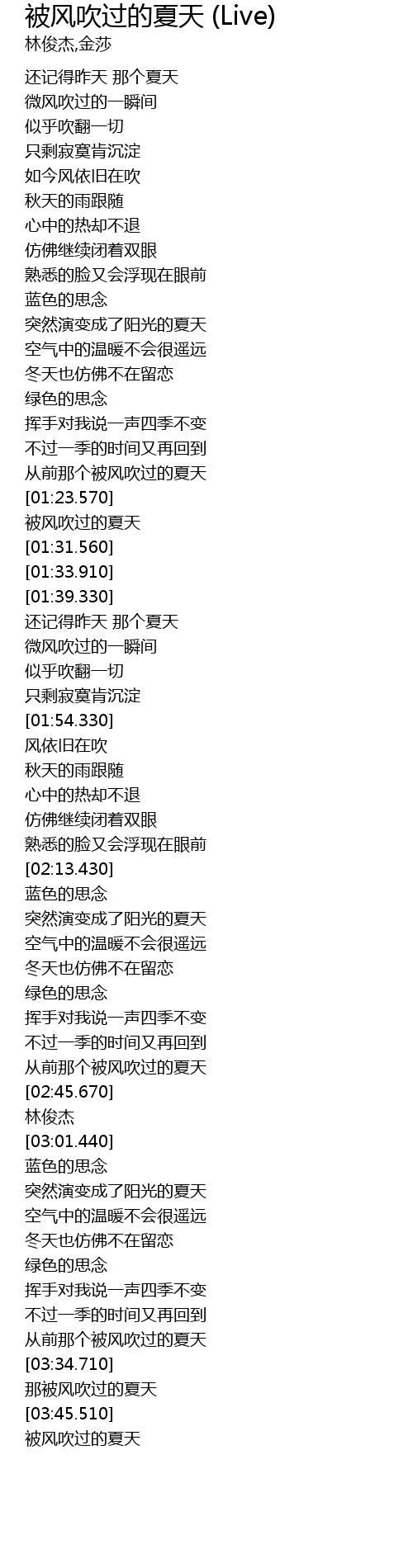 | [03:36.520] | nà bèi fēng chuī guò de xià tiān |