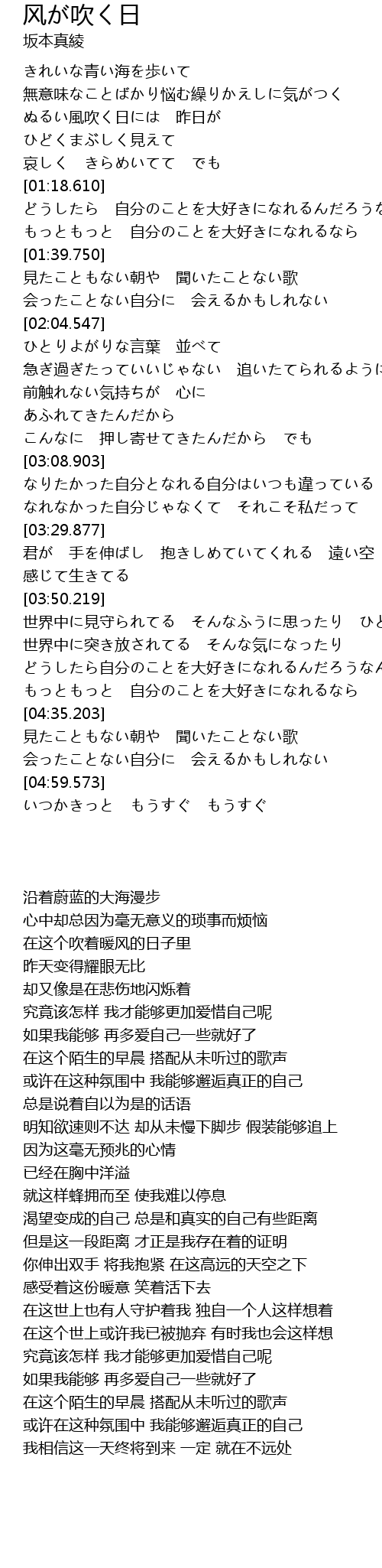 | [05:17.821] | いつかきっと もうすぐ もうすぐ |