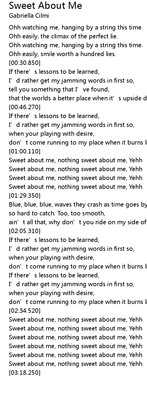 | [02:48.780] | Sweet about me, nothing sweet about me, Yehh |