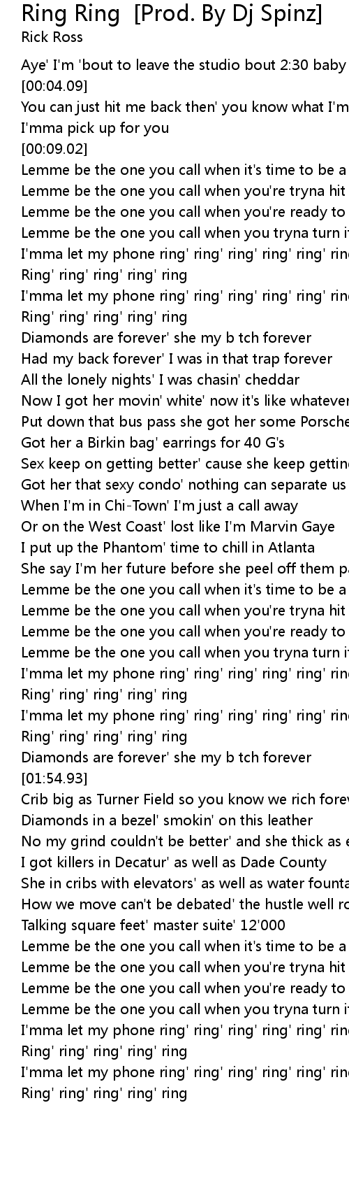 I'mma let my phone ring' ring' ring' ring' ring' ring' ring |