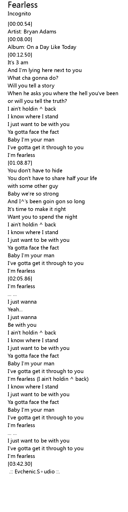 I'm fearless (I ain't holdin ^ back) |