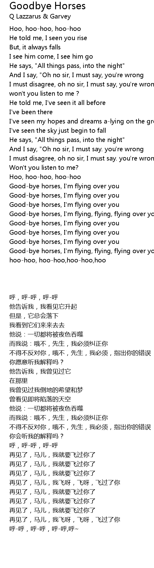 | [03:52.47] | Goodbye horses, I' m flying, flying, flying over you! |