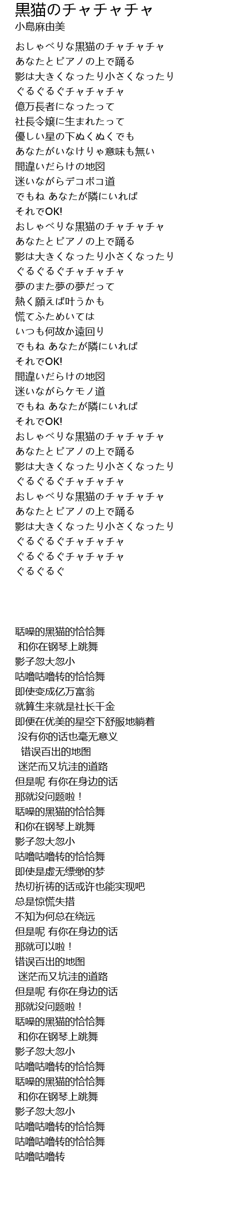 | [00:51.75] | おしゃべりな黒猫のチャチャチャ |