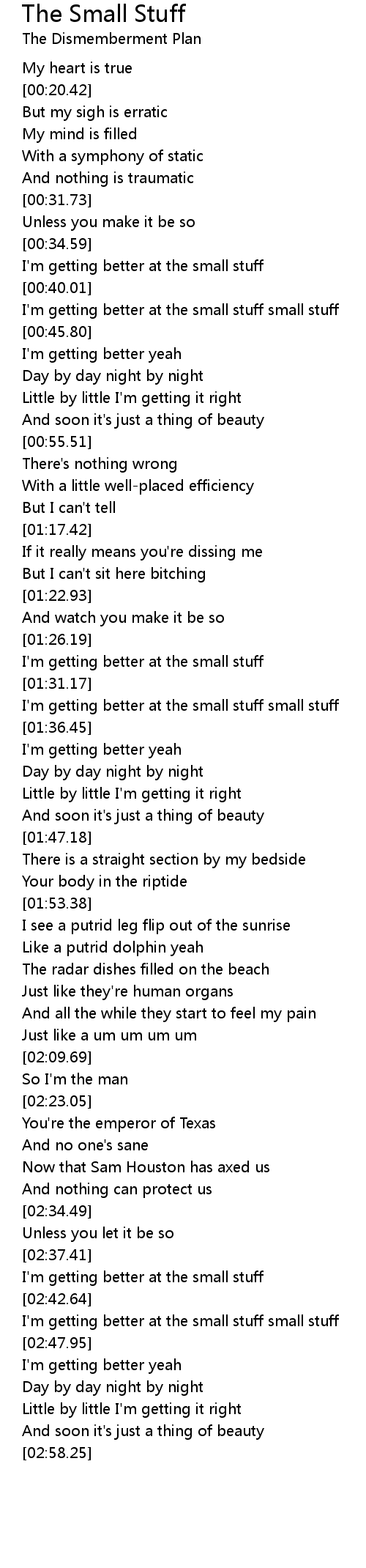 I'm getting better at the small stuff small stuff |