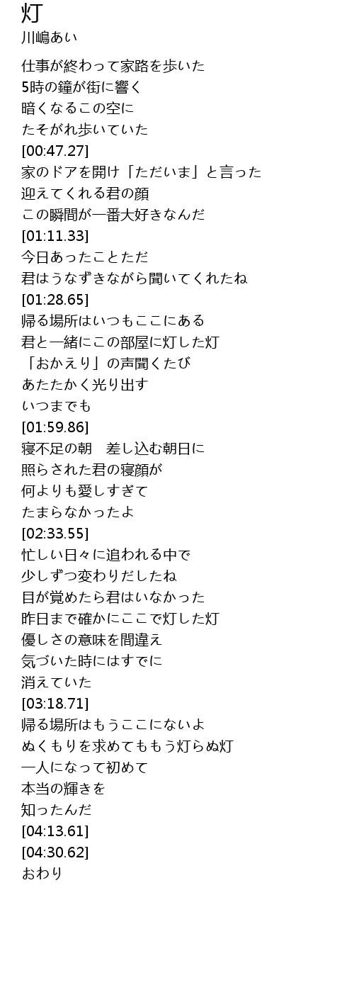| [00:48.03] | 家のドアを開け「ただいま」と言った |