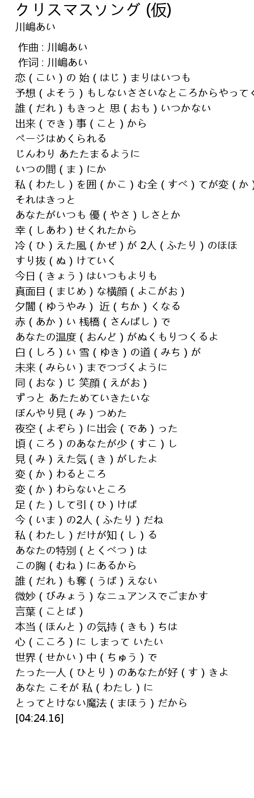 | [00:00.00] | 作曲 : 川嶋あい |