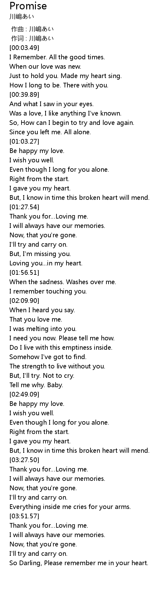 | [04:10.79] | So Darling, Please remember me in your heart. |