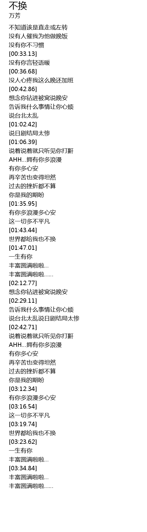 | [01:44.54] | shì jiè dōu gěi wǒ yě bù huàn |