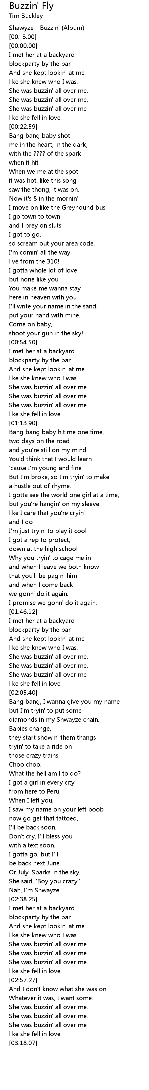 She was buzzin' all over me |