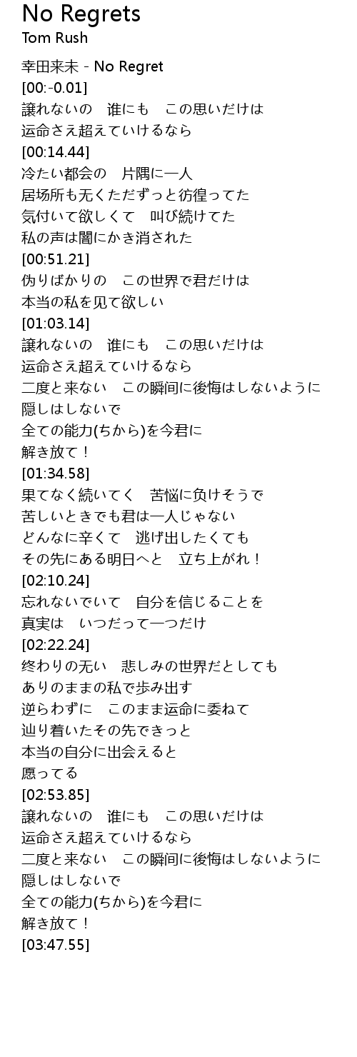 | [00:-0.50] | xìng tián lái wèi No Regret |